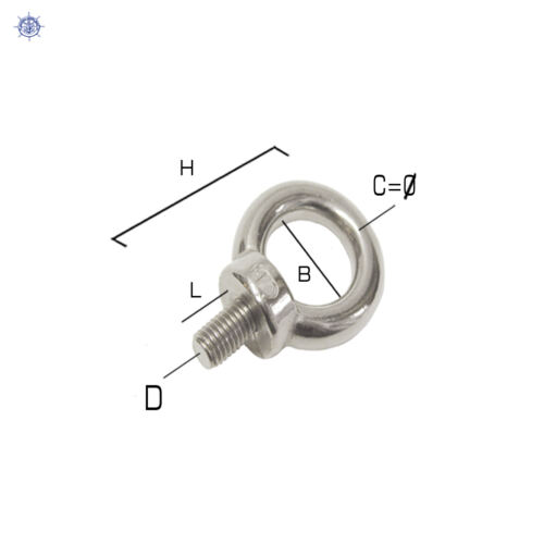 Anneau d’amarrage, avec filetage bois Axe 8 x 60 mm. Anneau 8 x 50 x 62 mm