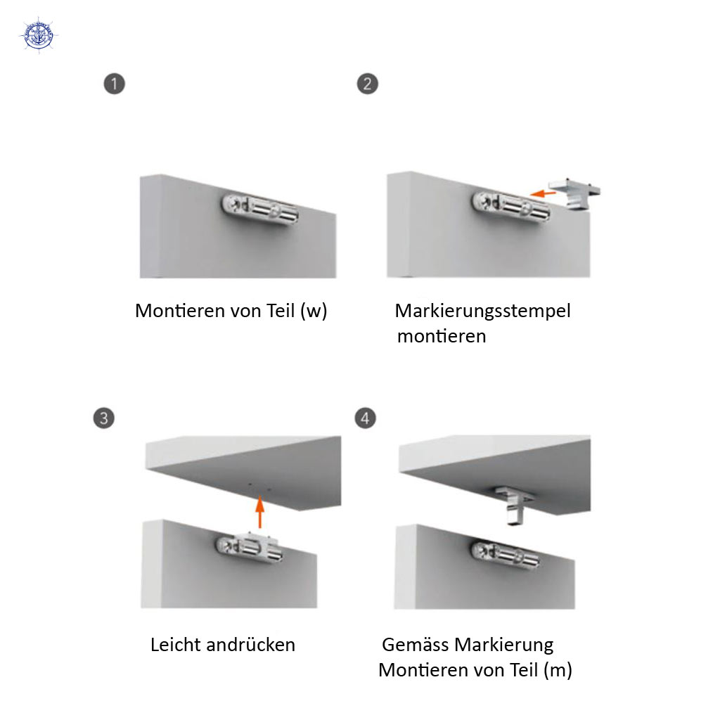 Double fermeture à bille , avec double verrouillage (encliquetage/fermeture), montage facile grâce à un poinçon de marquage et un double ruban adhésif. Avec des trous pour faciliter les petits ajustements après l’installation. Force de maintien 4kg. Acier inoxydable 316.